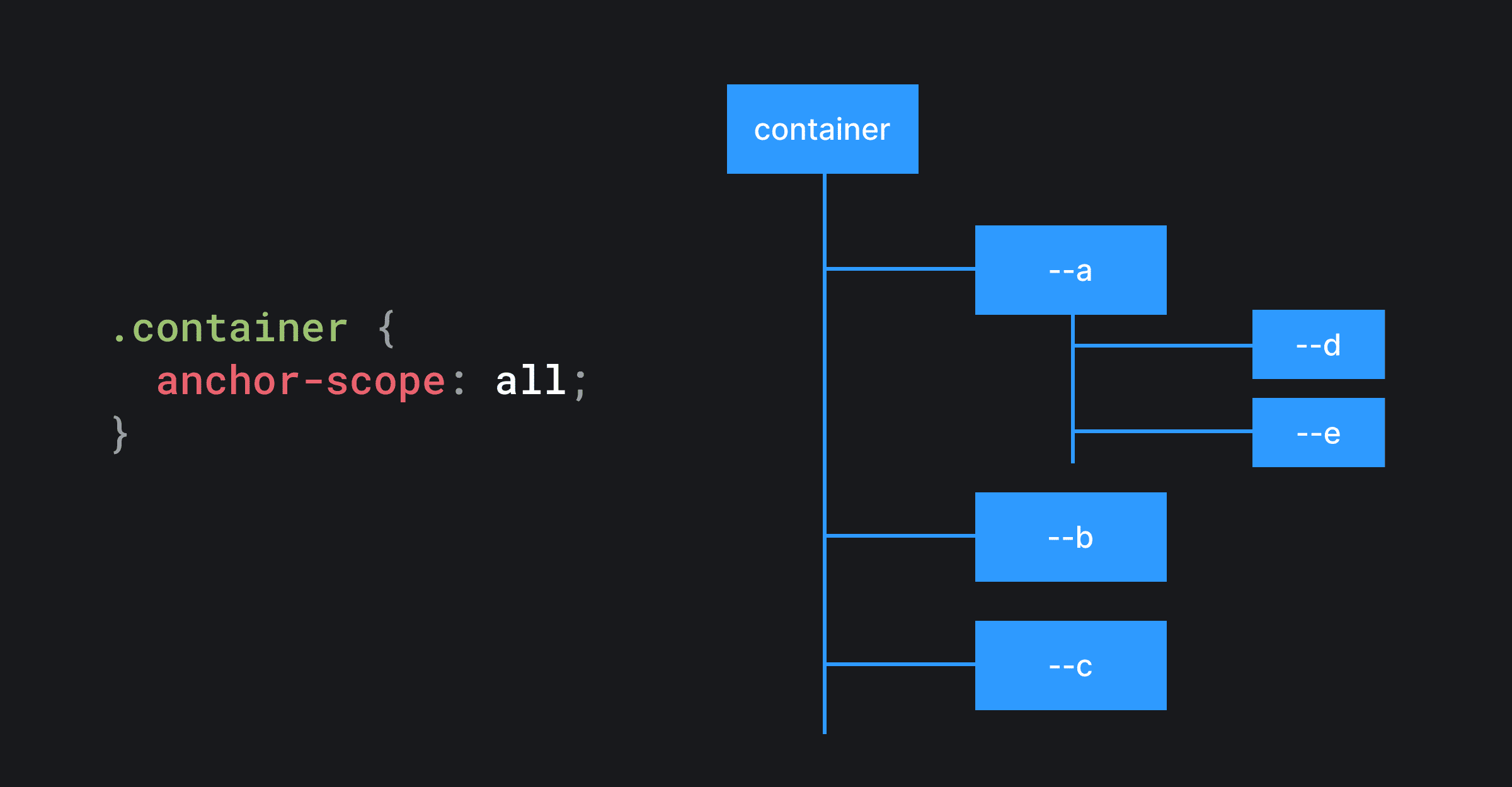 .anchor { anchor-name: --anchor;}.target { position: absolute; position-anchor: --anchor; position-area: top;}/* Ограничиваем область видимости якоря элементом списка.*/ul li { anchor-scope: --anchor;}